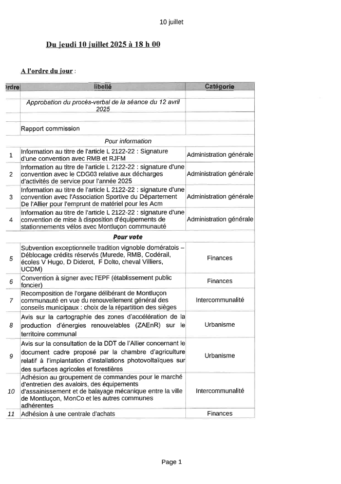 La prochaine séance du conseil municipal se tiendra le jeudi 10 juillet 2025, à 18h, en mairie de Domérat (salle des mariages).